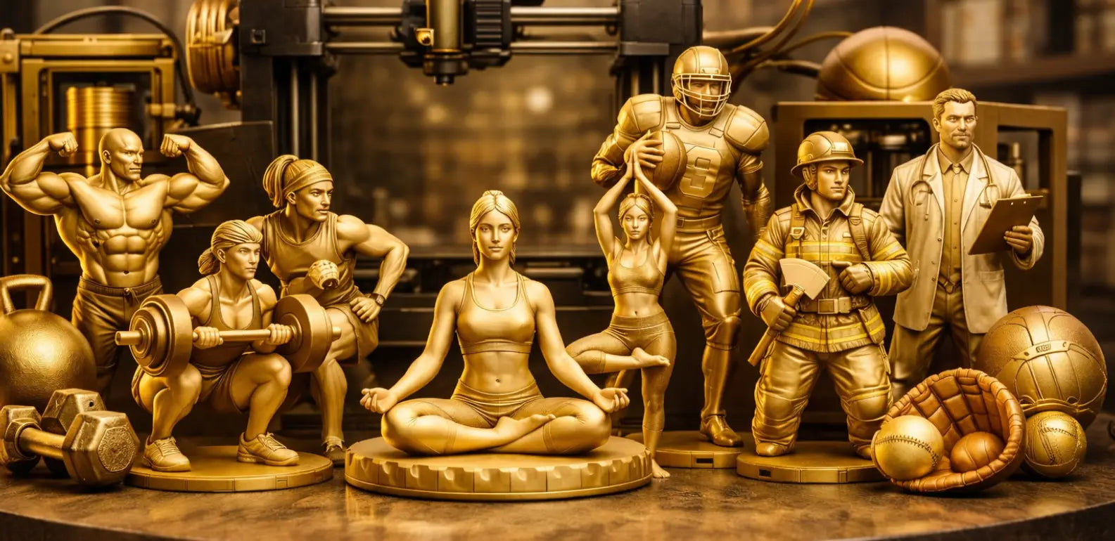 Discover stunning 3D-printed miniatures inspired by the strength, balance,and beauty of Sports, Fitness, and Yoga.